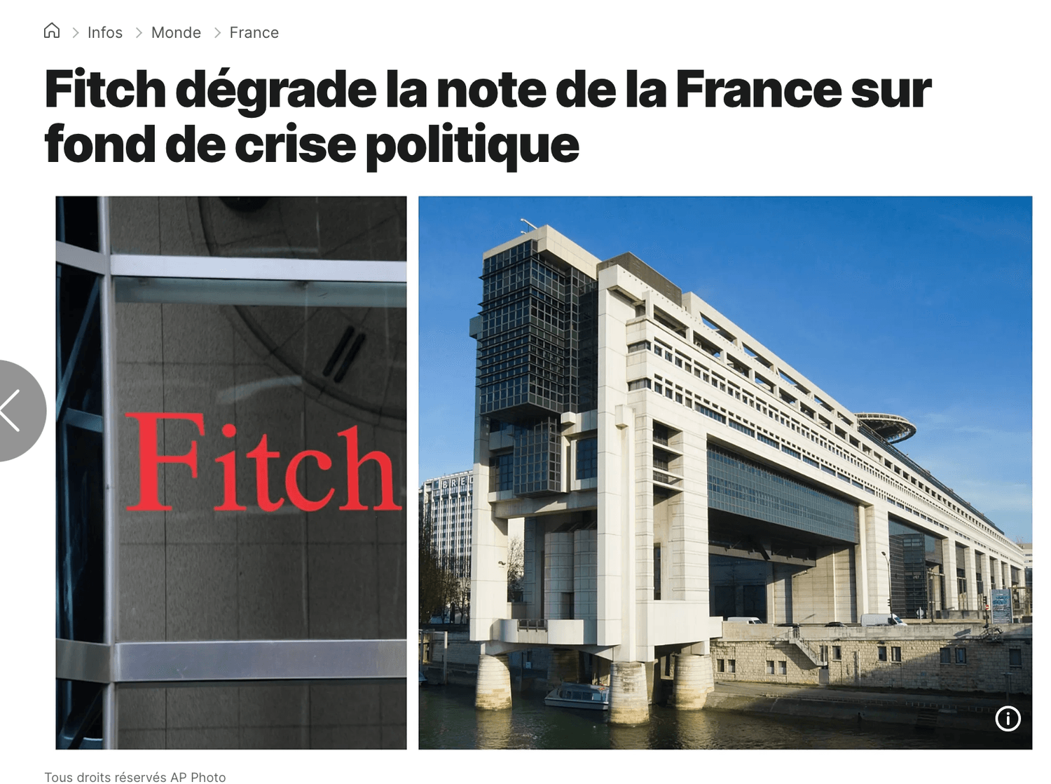 La célèbre institution Fitch qui évalue la santé de chaque pays à descendu sa note il y a quelques jours de cela :